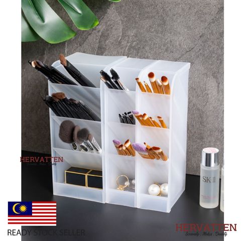 Hervatten Desktop Stationery 4 Grids Storage Box Organizer Transparent Plastic Comestic Makeup Case