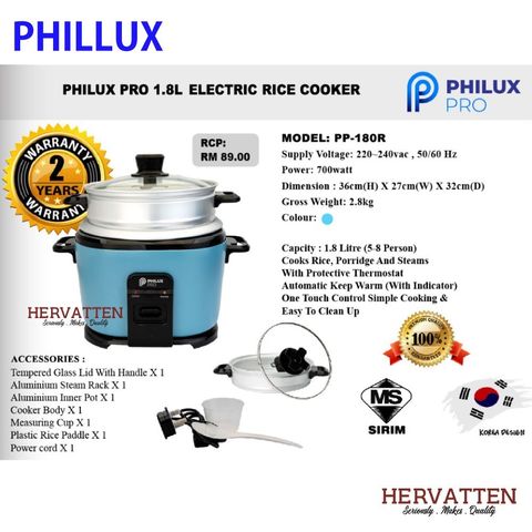 PHILUX PRO 1.8L ELECTRIC RICE COOKER (2 YEARS WARRANTY)