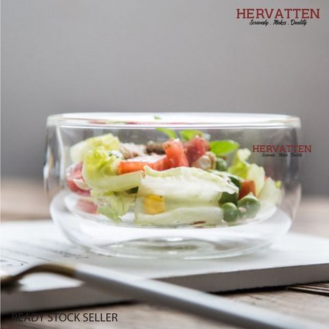 Hervatten Heat-Resistant Double-Layer Glass Bowl Home Dessert Cute Small Bowl