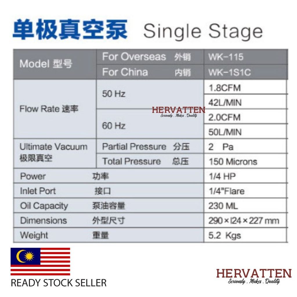 DSZH SINGLE STAGE VACUUM PUMP 1.8CFM (WK-115)