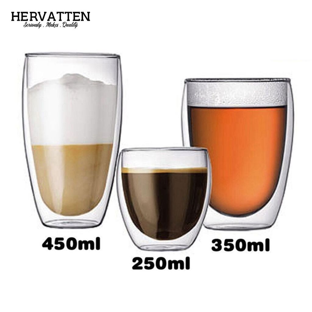 Hervatten Double Layer Drink Glass Cup 150ML/250ML/350ML/450ML