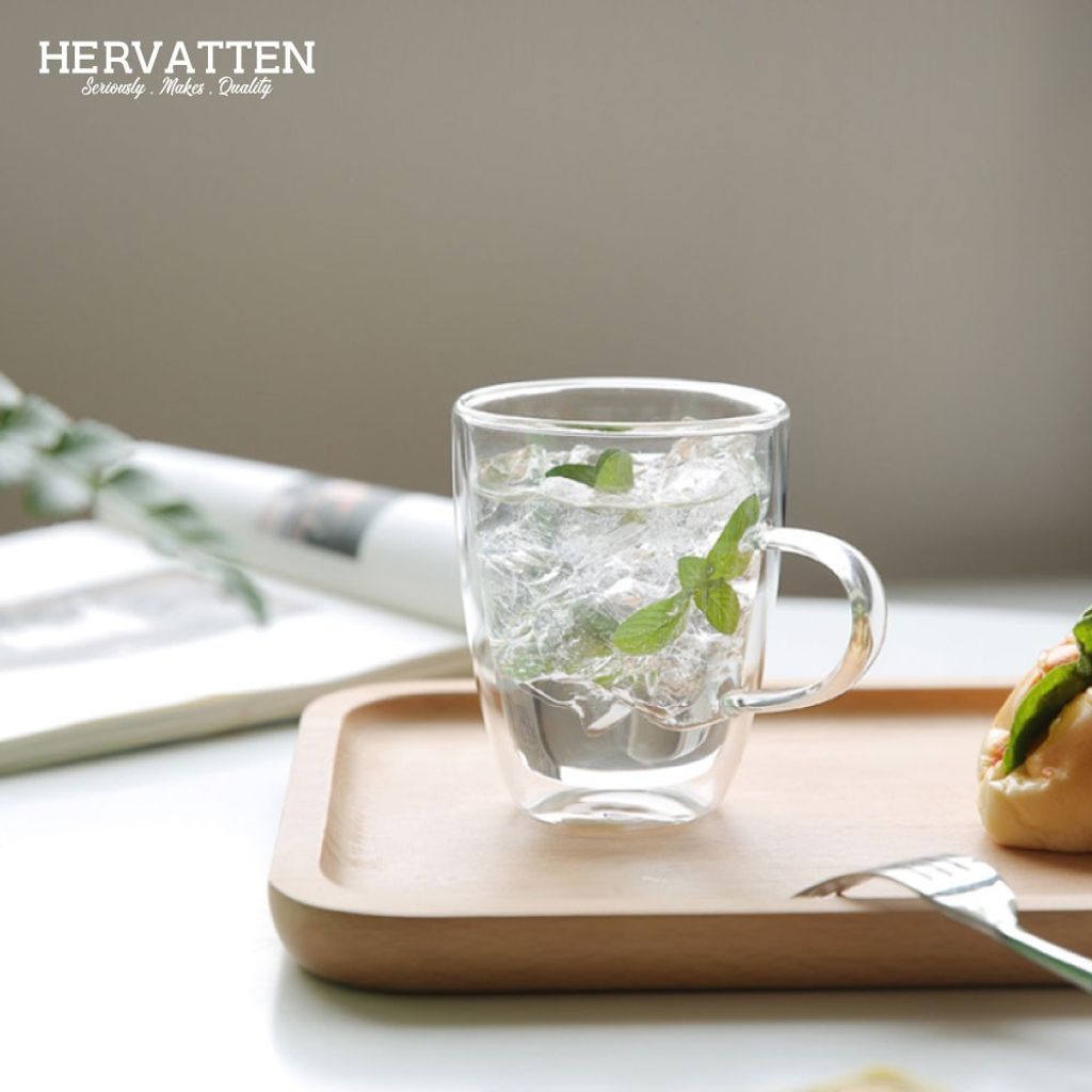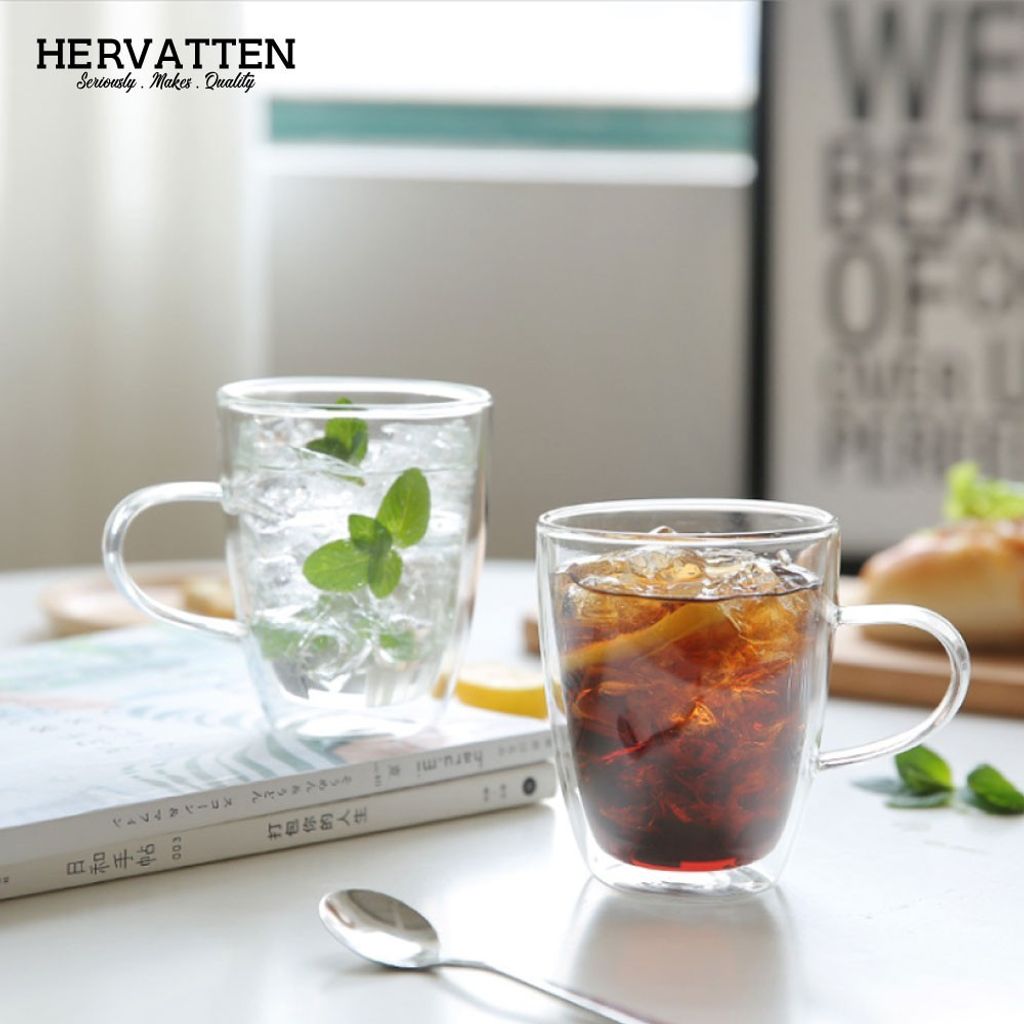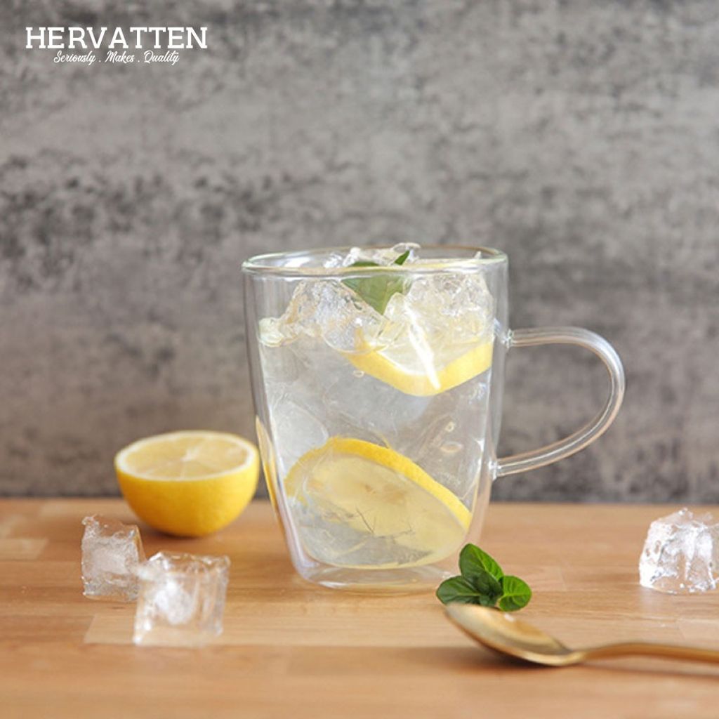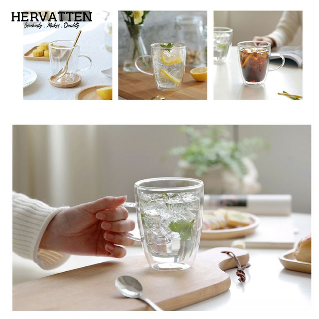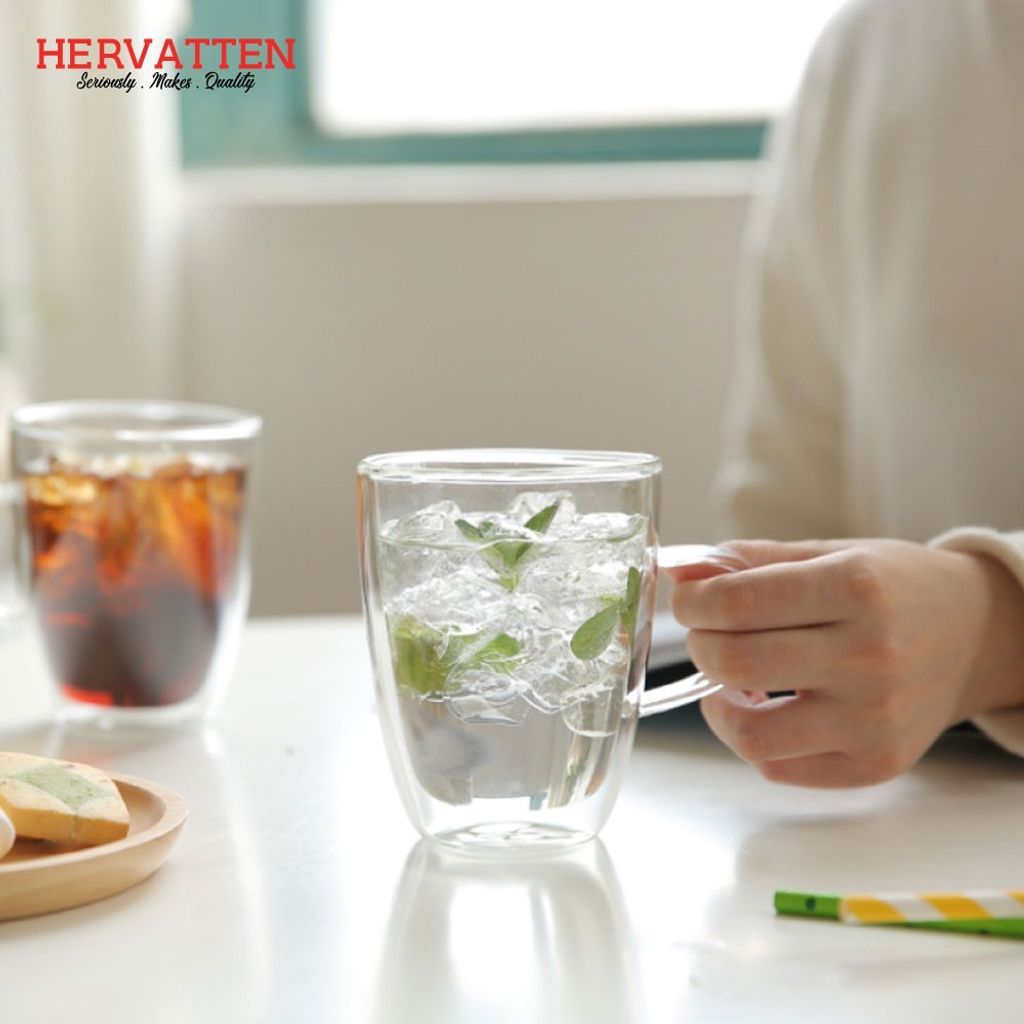 Product : Hervatten Double Layer Drink Glass Cup 360ML (With Handle)