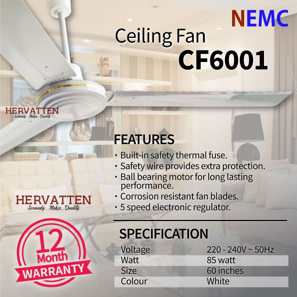 NEMC 60" Ceiling Fan CF6001 Aerodynamic Blade 5 Speed Strong Silent Breeze Fan