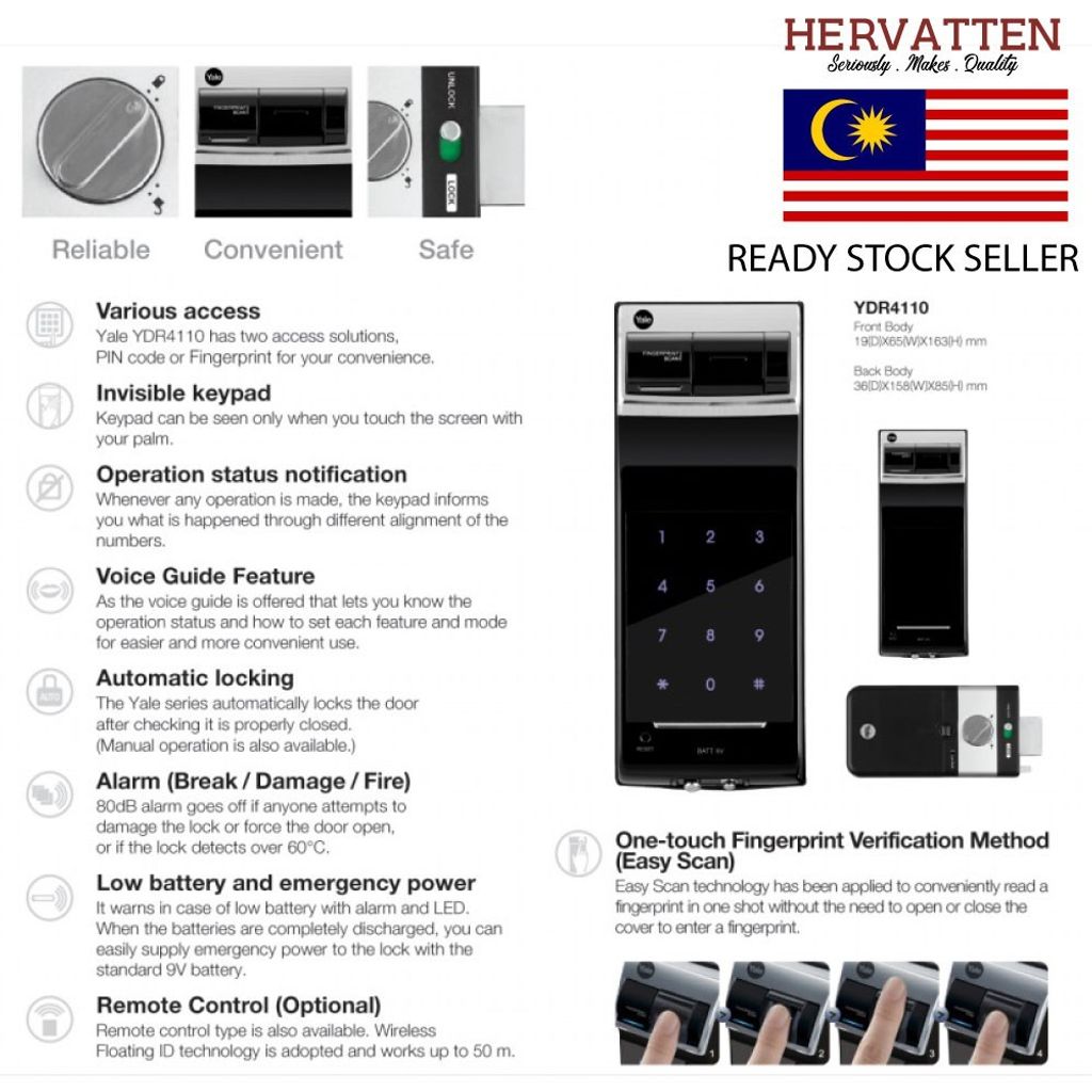 YALE YDR4110 PREMIUM BIOMETRIC FINGERPRINT/ KEYPAD DIGITAL DOOR LOCK